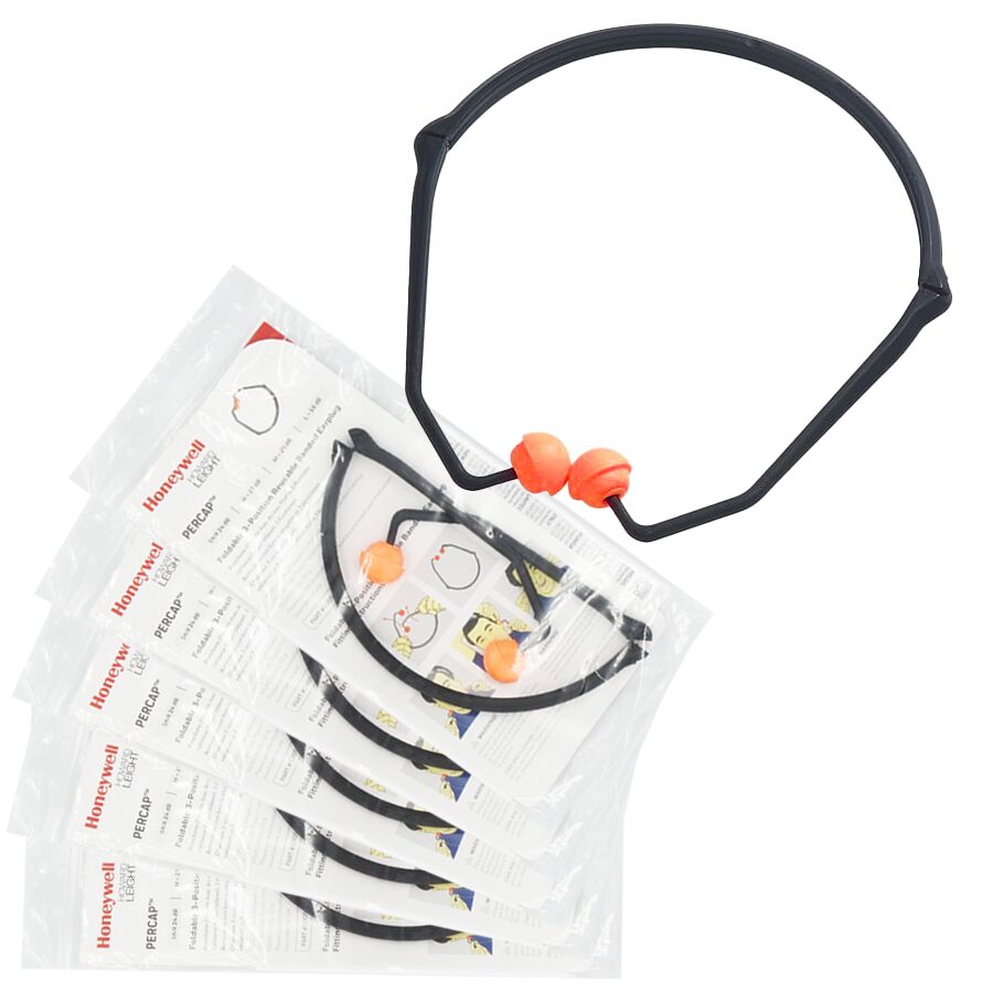 Konstrukcja wielopozycyjna zatyczek Honeywell PERCAP daje możliwości noszenia w wielu pozycjach na głowie, pod brodą lub na karku. Konstrukcja zatyczek do uszu PERCAP pozwala także na całkowite złożeniezatyczek co ułatwia ich przechowywanieczy przenoszenie np. w kieszeni.